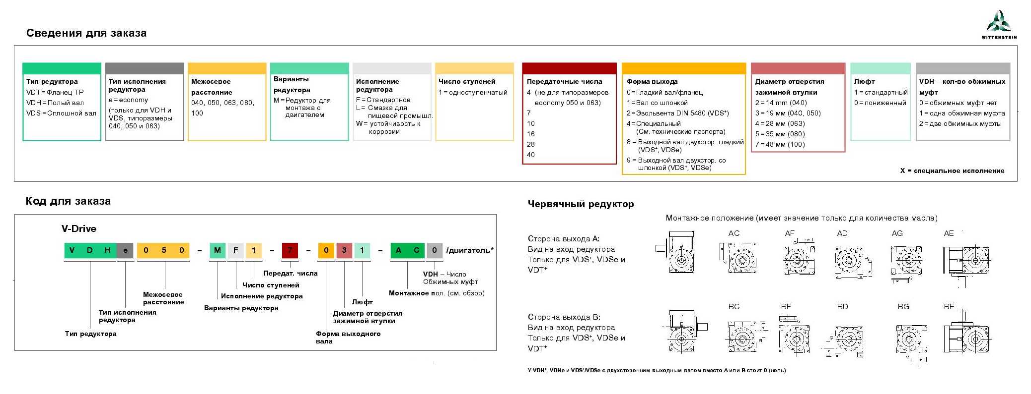 V-Drive+ - Мощный крутящий момент и малый уровень шумаСерия VDx заменяется на серии VT+, VH+ и VS+ с аналогичными присоединительными размерами и характеристиками. Редукторы VDx снимаются с серийного производства с апреля 2018 года но будут доступны для заказа в качестве запчастей к имеющемуся оборудованию. Серия VDx не рекомендуются к применению в новых разработках. Червячный серворедуктор с различными вариантами выходного вала: полый и полый вал с фланцем. V-Drive+ отличается высокой удельной мощностью и небольшим угловым люфтом. Особенно подходит для применения при непрерывном режиме работы.